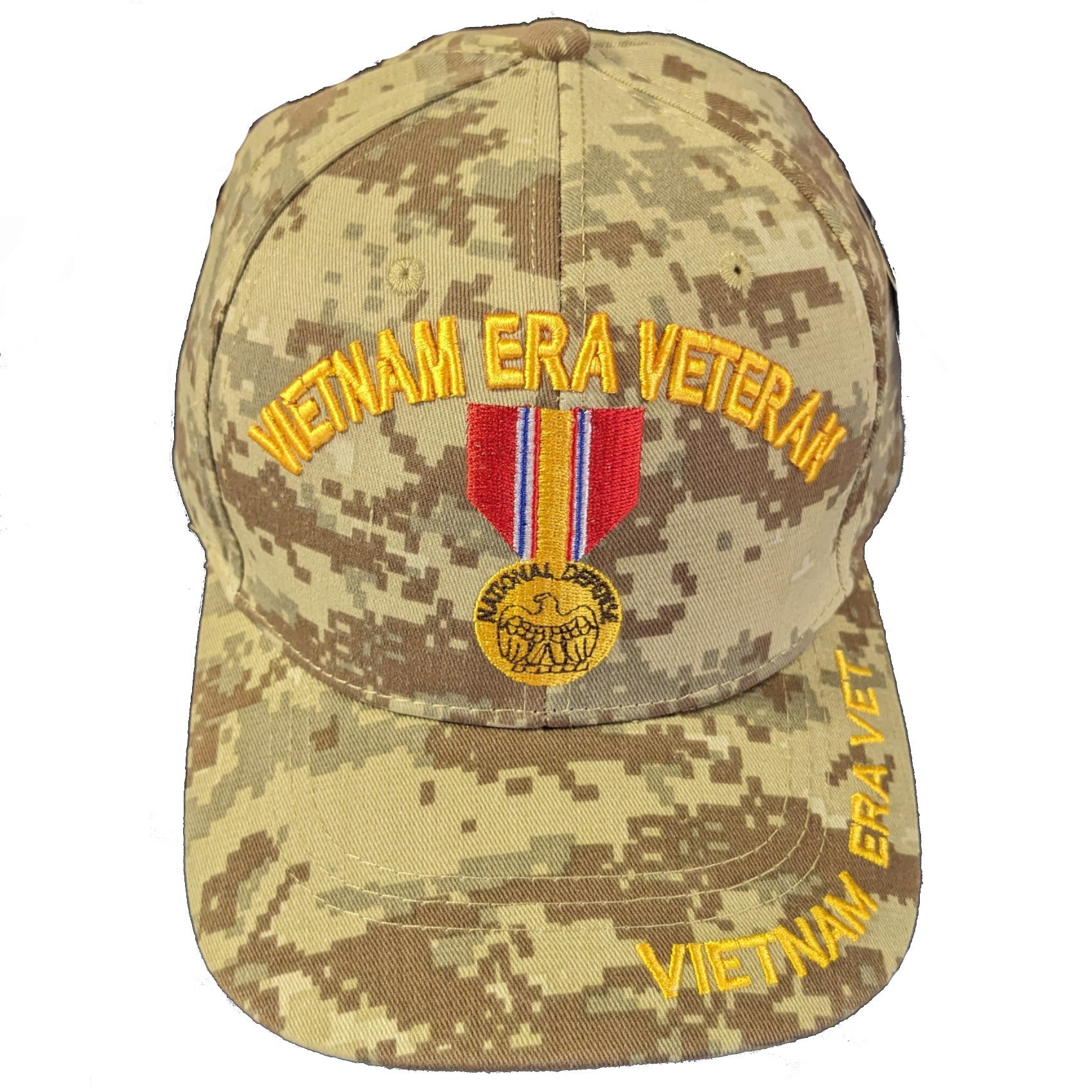 US Military Vietnam Era Veteran National Defense Medal Desert Camouflage Baseball Hat Cap