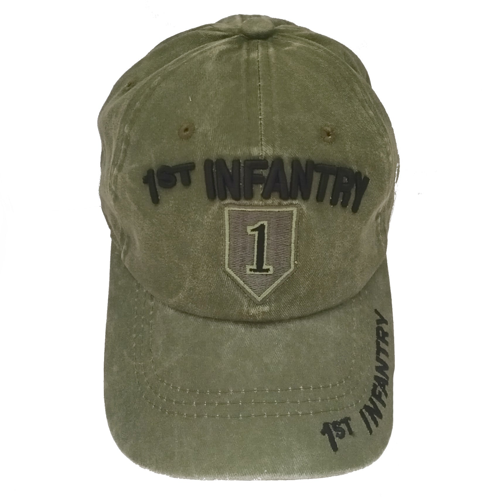 US Military 1st Infantry Division Pigment Washed Olive Adjustable Baseball Hat Cap