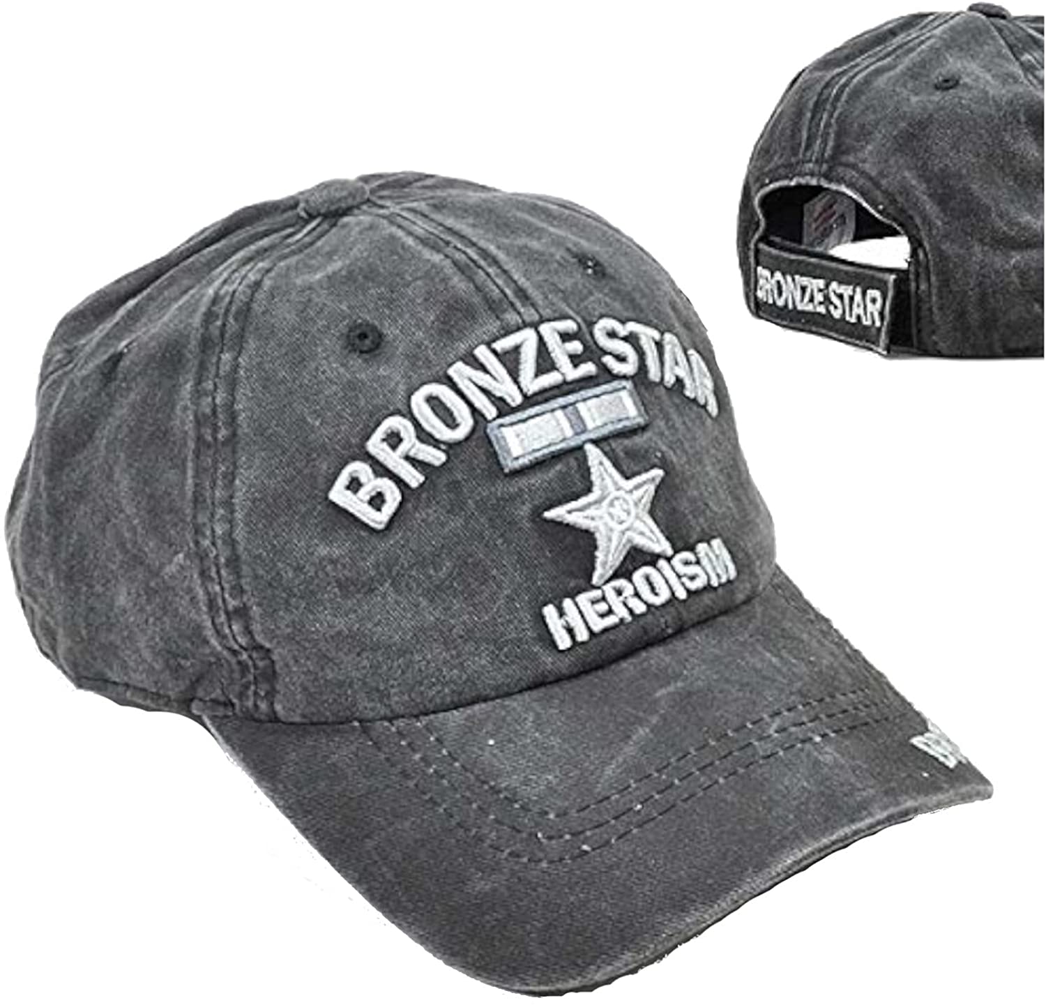 US Military Bronze Star Heroism Pigment Washed Black Adjustable Baseball Hat Cap