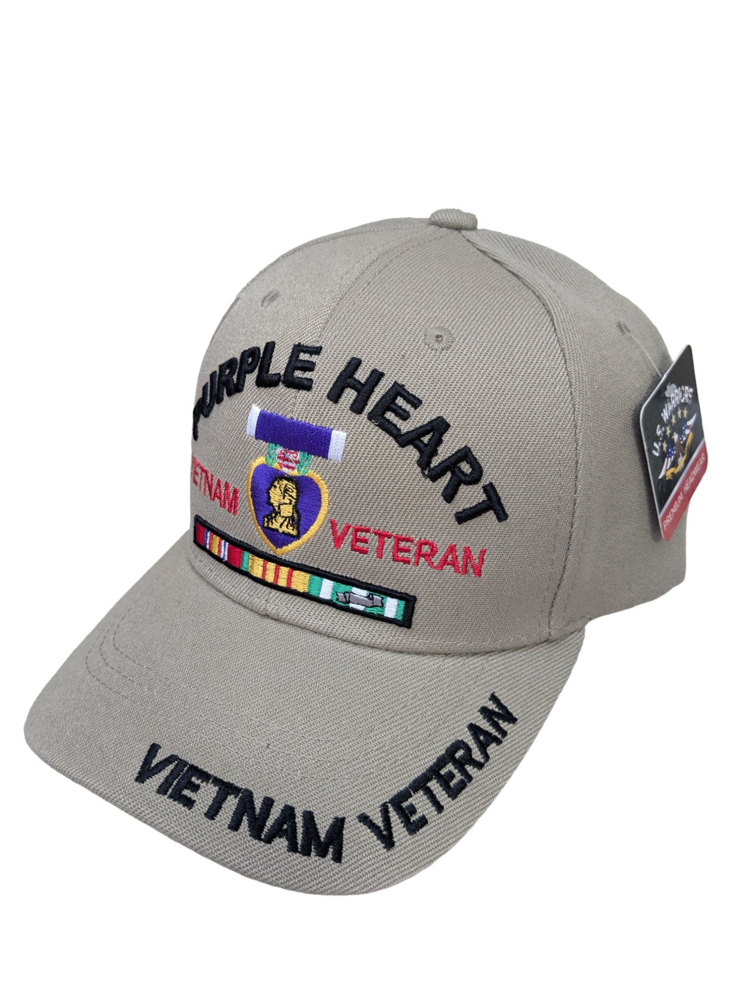 US Military Purple Heart Vietnam Veteran Khaki Adjustable Baseball Hat Cap